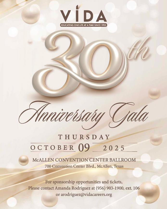 McALLEN, Texas — Valley Initiative for Development and Advancement (VIDA) will commemorate three decades of service and impact with its 30th Anniversary Gala at 7 p.m., Thursday, October 9, 2025 at the McAllen Convention Center Ballroom. This milestone celebration will commence with a cocktail hour at 6 p.m.and honor VIDA’s enduring commitment to advancing education, fostering economic mobility, and creating a more prosperous future for the Rio Grande Valley.