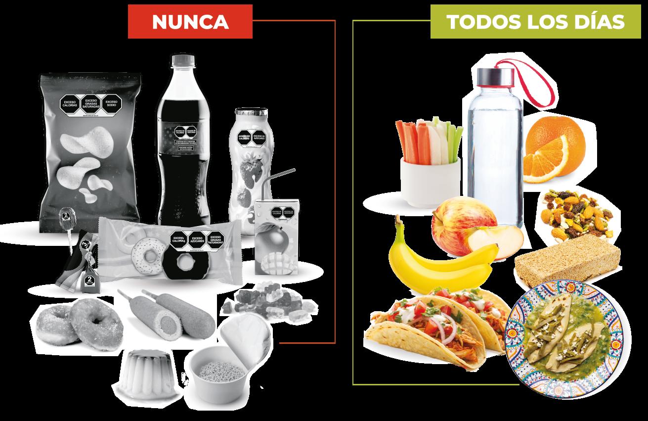 Figura 2. Alimentos y bebidas permitidos y no permitidos en las escuelas según la regulación actual