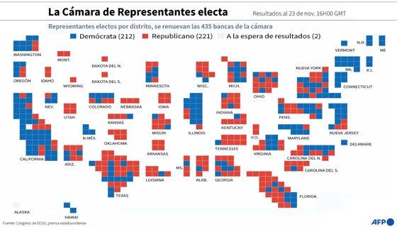 AFP.- El Partido Republicano ganó el control de la Cámara de Representantes de Estados Unidos, según proyecciones de medios de comunicación el miércoles, logrando por poco una base para oponerse a la agenda del presidente Joe Biden en los próximos dos años.