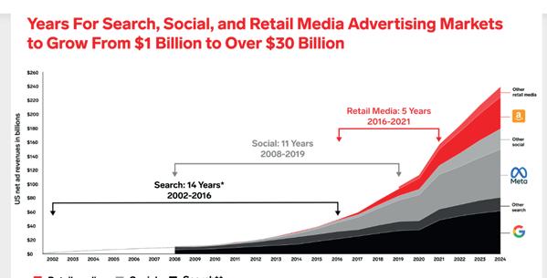 La convergencia de lo digital y lo físico está transformando la forma en que los minoristas y las marcas interactúan con los consumidores. El crecimiento de la inversión publicitaria en los medios digitales ha tenido grandes momentos en los últimos años. Inicialmente, los buscadores fueron los pioneros, con Google liderando este espacio y convirtiéndose en el epicentro de la inversión publicitaria para las compañías. La capacidad de comprar anuncios publicitarios en buscadores transformó el panorama del marketing digital, estableciendo una nueva era de visibilidad y transacciones eficientes para las marcas.