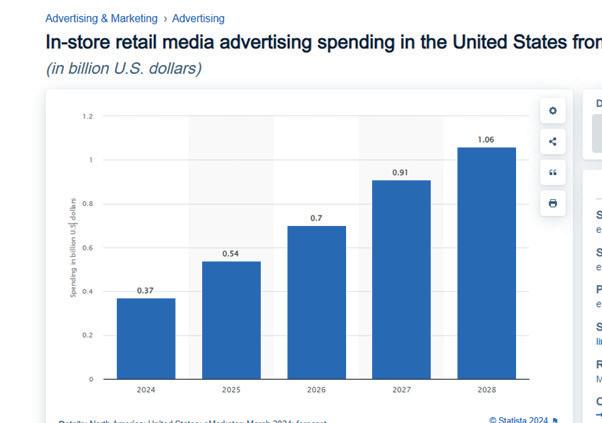Crecimiento de inversión en publicidad digital en punto de venta en USA del 2024 al 2028.