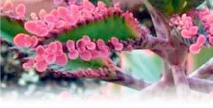 Estos brotes caen al suelo y al enraizar van generando nuevas plantas que se propagan interminablemente formando colonias. Este Kalanchoe en condiciones óptima puede crecer hasta un metro y medio de altura, con gruesas hojas triangulares y puntiagudas de color verde además de unas hermosas flores de color rosado.