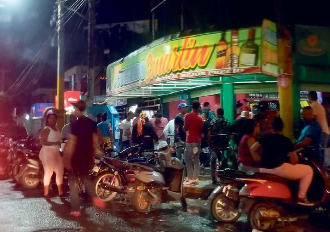 Esta invasión de los espacios públicos se ha convertido en una práctica muy común en esta ciudad. Los bebe dores de romo y cervezas son servidos en mesas habilitadas encima de las aceras y parte de las vías principa les, lo cual afecta a peatones y conductores de vehículos. P. 20 “Colmadones”