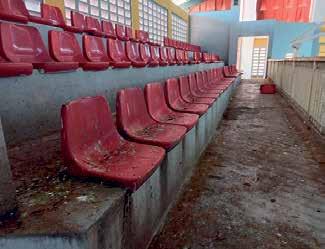 La edificación se ha convertido en un verdadero nido de palomas. Son cientos las que viven día y noche dentro del lugar, llenándolo de excremento en todos los espacios posibles. Esta invasión ha convertido el club en un vertedero, ensuciando asientos, pasillos y áreas de juego.