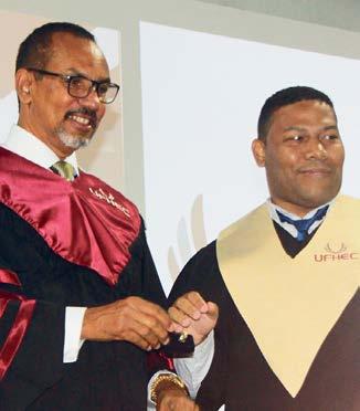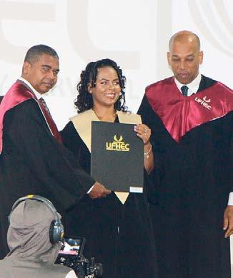 La investidura, que tuvo lugar en las instalaciones de UFHEC en La Romana, contó con la participación de cuatro nuevos doctores en odontología y tres magísteres en derecho inmobiliario.