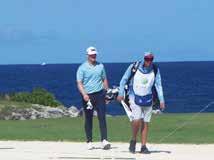 Bill Haas le entrega su palo al caddie luego de embocar la pelota; El norteamericano se encuentra saludable en Punta Cana; En el 2018 sufrió un accidente automovilístico del cuál medios internacionales relatan que se salvó de milagro.