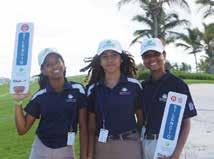 Jóvenes voluntarias que trabajan en el torneo; Cientos de jóvenes participan como voluntarios durante el evento, indicando los momentos de silencio previo a cada uno de los golpes de los golfistas