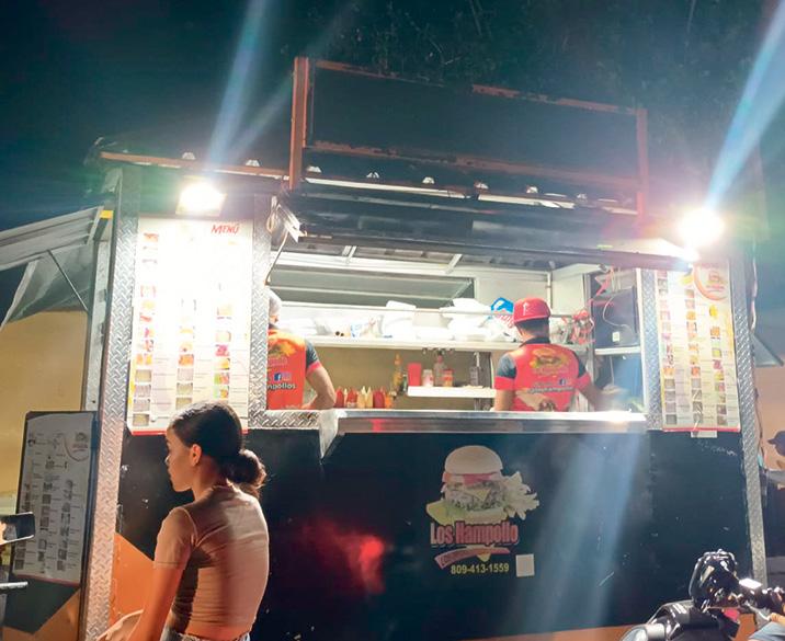 HIGÜEY. La vida nocturna en Higüey comienza a las 6:00 de la tarde cuando los carritos de venta se estacionan para ofrecer diversos platos que representan la gastronomía de la República Dominicana. Estos manjares, conocidos popularmente como comida rápida, incluyen empanadas, hot dogs, sándwiches, pizzas, entre otros. Son una opción conveniente para las diversas familias que buscan diversión y entretenimiento fuera de la rutina diaria.