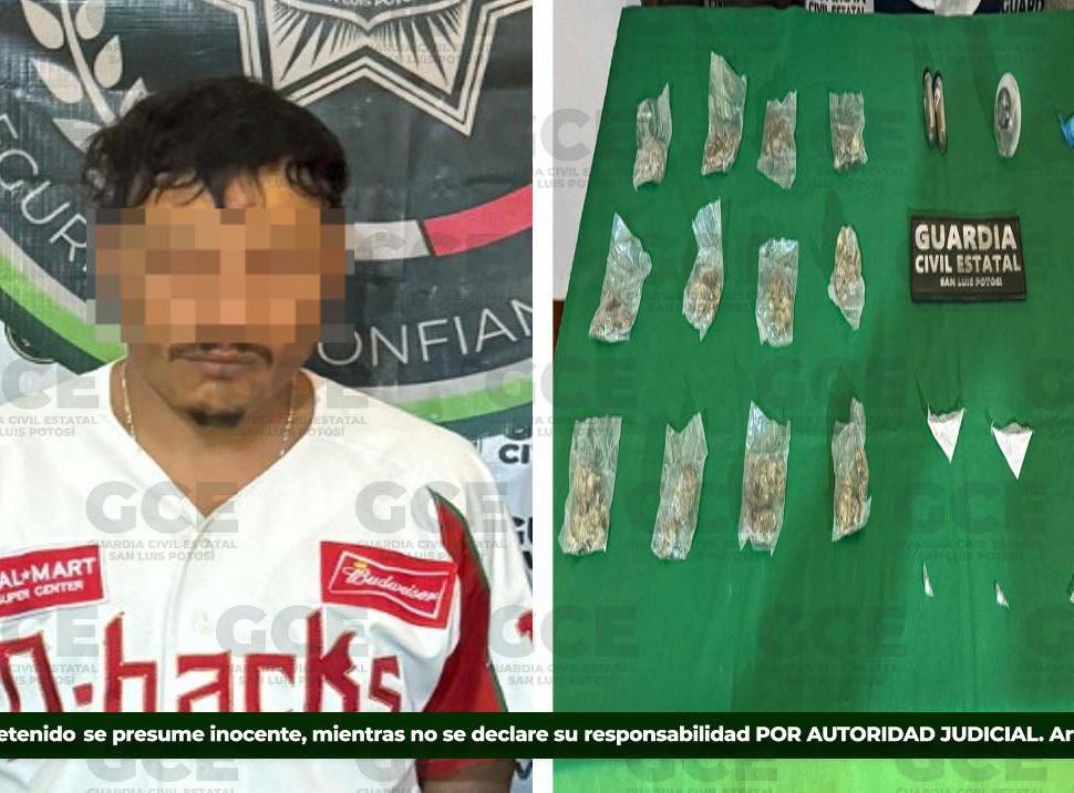 Como parte de las acciones estratégicas de inteligencia y los operativos permanentes de seguridad en la región Altiplano, elementos de la Guardia Civil Estatal realizaron la detención de un hombre por presunta posesión de diversas sustancias ilícitas. Los hechos se registraron durante recorridos preventivos en el municipio de Charcas, donde fue detenido Ángel “N”, de 32 años de edad, quien presuntamente manifestó pertenecer a un grupo delictivo.