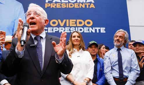 representa “una ilusión” para quienes esperan recuperar la seguridad en el país. “Me presento ante ustedes como un gregario de esta coalición, simplemente un pegador de ladrillos, porque quiero esta patria inmensamente”, dijo el exmandatario. Valencia, por su parte, aseguró que el objetivo es construir un gobierno que incluya a distintos sectores políticos, haciendo alusión a que Oviedo, abiertamente homosexual, discrepa en algunos temas sociales con ella.