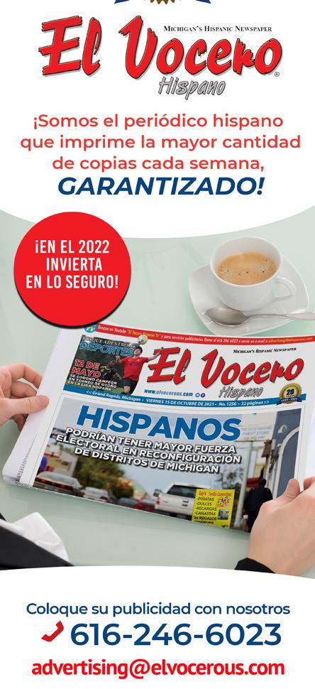 • PÁGINA 30 • GRAND RAPIDS, MICHIGAN • VIERNES 3 DE FEBRERO DE 2023 • EDICION 1324 • PÁGINA 30 • WWW.ELVOCEROUS.COM GRAND RAPIDS, MICHIGAN • VIERNES 3 DE FEBRERO DE 2023 • EDICION 1324