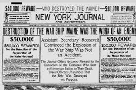 Cuando se produjo la explosión del acorazado Main en las costas de Cuba, Hearst y Pulitzer compitieron fieramente en dar las noticias del hecho que servía de detonante de la guerra de Estados Unidos contra España en las colonias del Caribe y Filipinas. Ambos enviaron