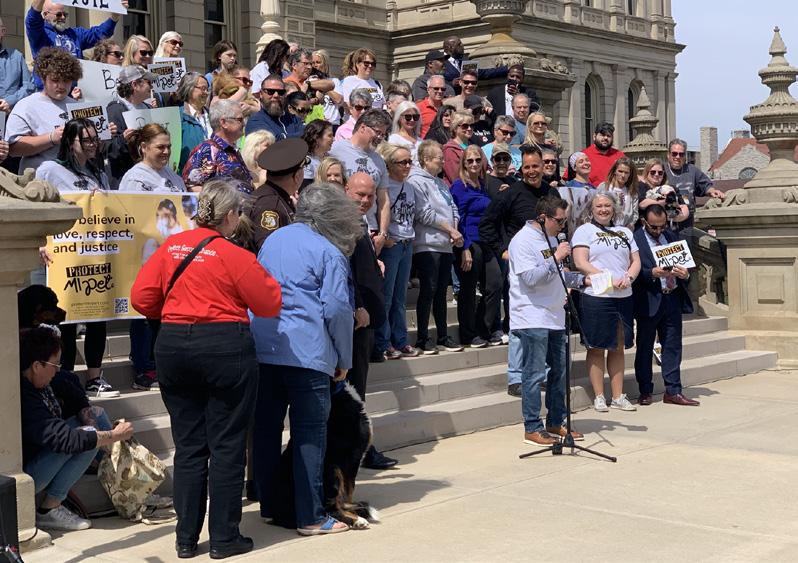 Protect MI Pet realizó una manifestación en Lansing el martes 11 de abril para hacer un llamado sobre la creación de un registro de abuso animal y realojamiento de mascotas en menos de 22 días en lugar de esperar a que finalice un caso judicial.