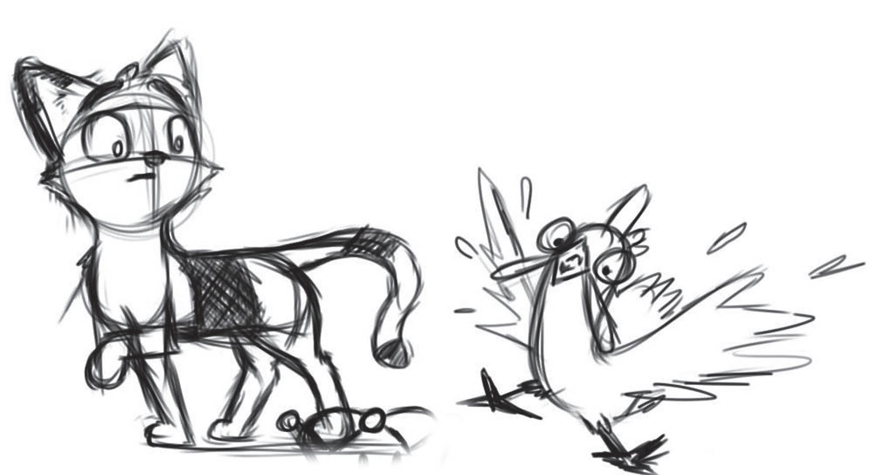 -¡Conseguiré engañar a mi vecina, y esta, con el juicio nublado a causa de la fiebre, me dejará entrar sin problemas! Cuando esto ocurre, me abalanzaré sobre ella hasta que tan solo queden las plumas– Pensaba el despiadado del gato, que