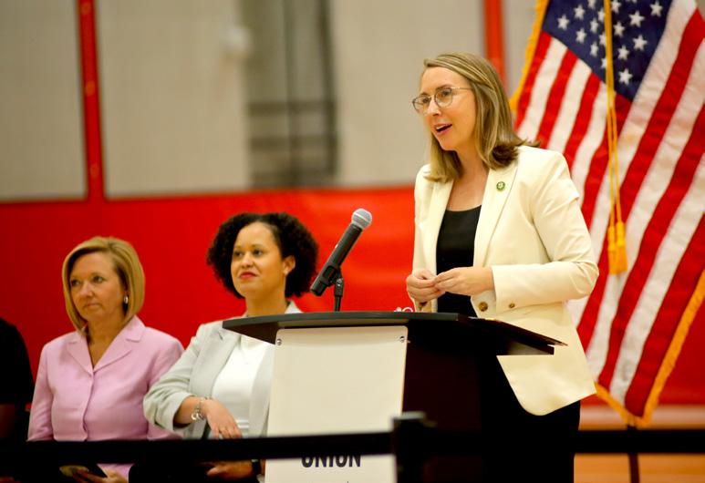 (EVH) – La congresista Hillary Scholten visitó Union High School el martes para una reunión pública donde abordó la crisis de explotación infantil, incluida la violencia armada y la cobertura de salud.