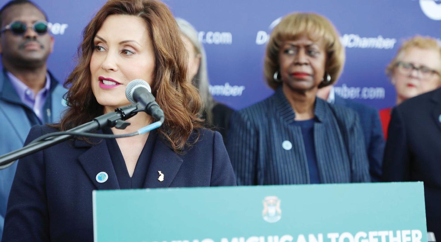 La gobernadora Gretchen Whitmer hablando sobre el nuevo "Consejo Growing Michigan Together". (Foto por la oficina de la gobernadora Gretchen Whitmer)