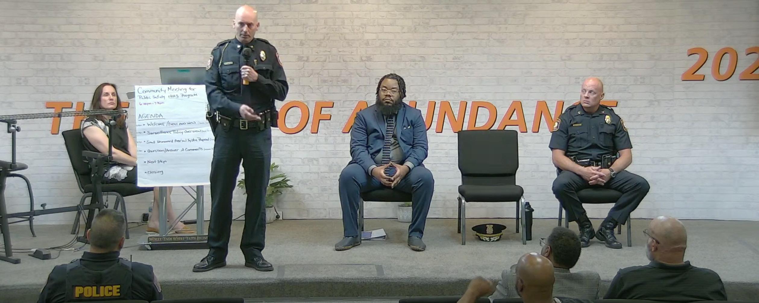 realizó una reunión comunitaria para la seguridad pública, específicamente el uso de drones, donde muchos expresaron su preocupación