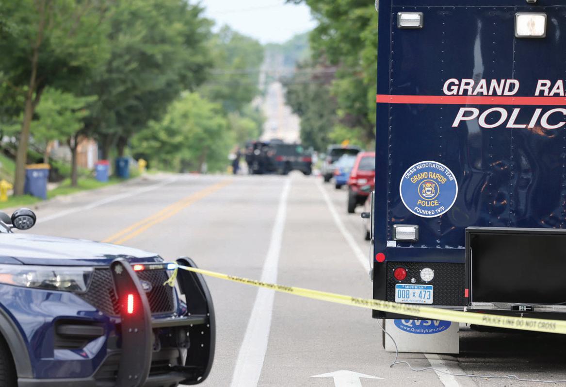 Un atrincheramiento se desarrolló en Lafayette Avenue NE y Mohrhardt Street en Grand Rapids el miércoles 19 de julio por la tarde. Se capturó pacíficamente a un hombre que era buscado por una felonía. (Foto: Andrés Abreu/ EVH)