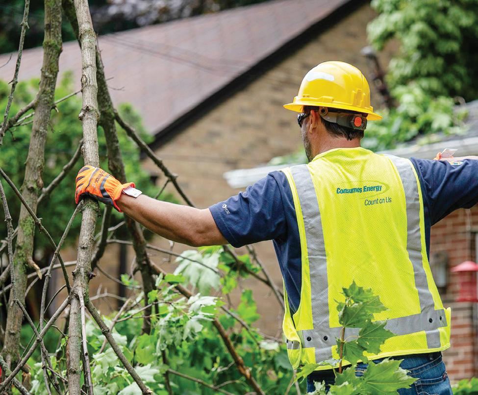 El personal de Consumers Energy continúa los esfuerzos de reparación en Norton Shores, una de las áreas más afectadas por las tormentas del martes, con vientos superiores a 70 mph y más de 150,000 clientes inicialmente sin electricidad. (Foto cortesía Consumers Energy)
