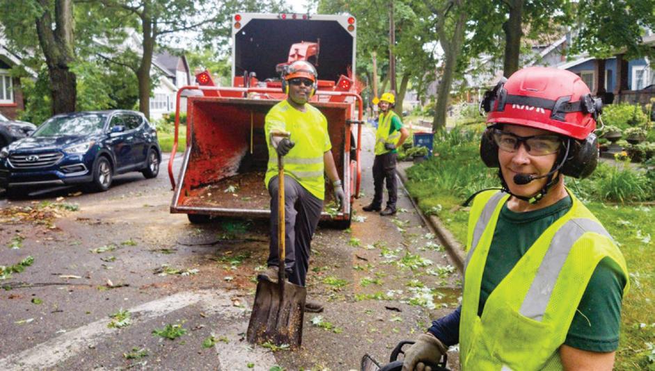 El personal de la Ciudad de Grand Rapids continúa limpiando los escombros dejados por la tormenta en toda la ciudad, trabajando arduamente para restaurar la normalidad tras los daños causados. Foto cortesía Ciudad de Grand Rapids.