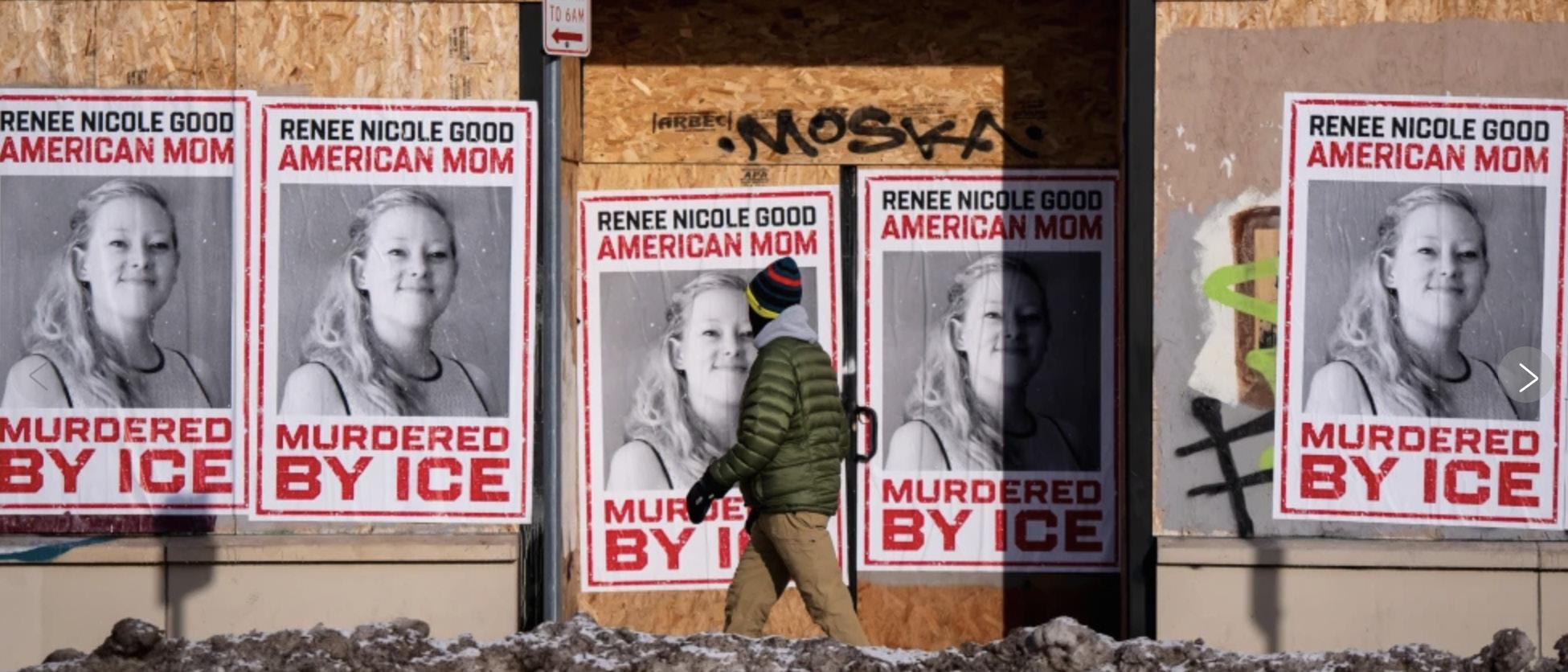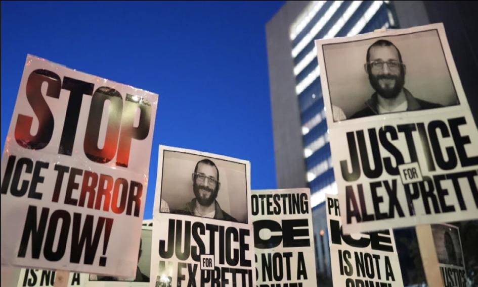 Manifestantes salieron a las calles tras la muerte de Renee Good y Alex Pretti durante el operativo, exigiendo responsabilidades y el fin de las redadas. (AP) inconstitucional contra nuestro estado”.
