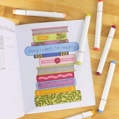 All Booked Up features 40 coloring pages filled with the coziest reading spots, your favorite romance tropes, and support for our local libraries. Featuring classic literature like Anne of Green Gables, Pride and Prejudice, and Little Women, there is a little something for every reader. This book will remind you to sit back, relax, and enjoy a good book... or coloring book!