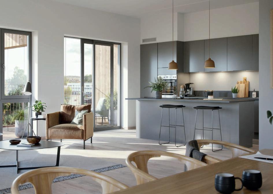 Populær 4-romsløsning som har vært attraktiv i salgstrinn 1. C34 er en gjennomgående hjørneleilighet med en balkong mot den fine bakgårdshagen, og balkong mot elva og Gjøvik gård på den andre siden. Leiligheten oppleves som åpen og luftig. Et av rommene har skyvedører ut mot stua, og kan dermed brukes som soverom, kontor eller tv-stue. Innholdsrikt kjøkken med øy som har induksjonstopp og platetoppventilator. Kjøkkenet har også en praktisk bod som f.eks egner seg til fryser og annen oppbevaring. C34 ligger i 4. etasje fra elvepromenaden.
