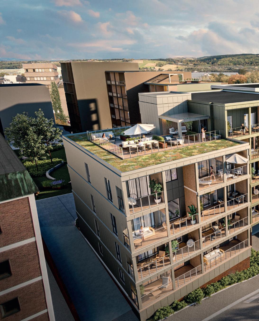 Kompakt og smart 2-roms hjørneleilighet med god planløsning. Leiligheten har en romslig terrasse på 26 m2 som vender ut mot bakgårdshagen. Dette uteområdet blir parkmessig opparbeidet, og byr på fint utsyn fra leiligheten. Stue og kjøkken har åpen løsning, og fra stua er det skyvedør inn mot soverommet. Entreen har garderobeplass og adkomst til badet. C21 får ettermiddags- og kveldssol, og oppleves som en åpen og luftig leilighet.