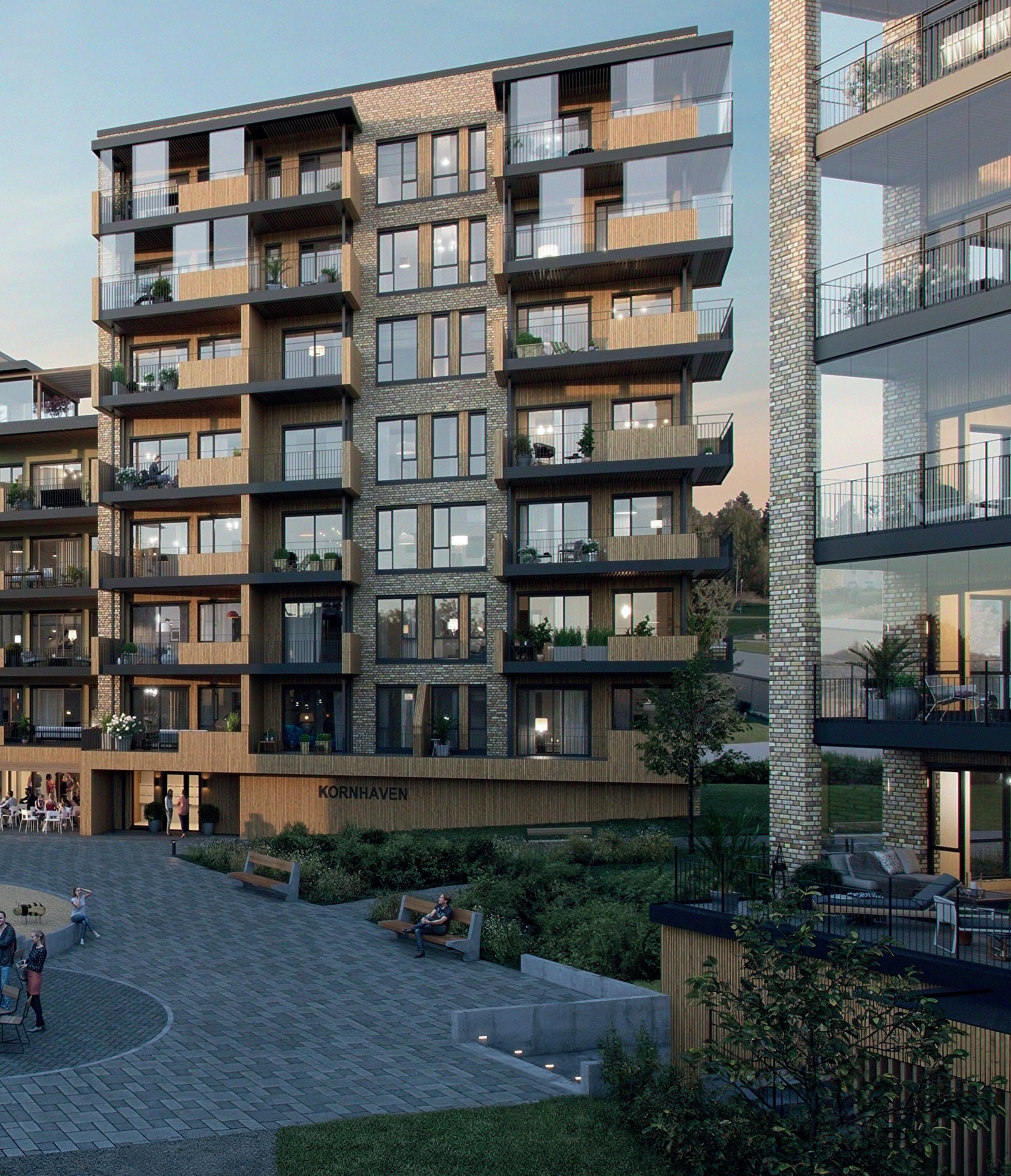 Kornhavens leiligheter er tegnet med tanke på komfort, kvalitet og funksjonalitet, slik at du kan nyte en enklere hverdag. Store vinduer, romslige balkonger og solid standard er viktige stikkord for Kornhavens leiligheter. Parkering i kjeller, heis opp til leilighetsetasjene og gode fellesfasiliteter. Kornhaven tilbyr deg gode kvaliteter både inne og ute - fra solrike uteplasser med vidstrakt utsikt til moderne fellesområder hvor du kan møte andre beboere. Her har arkitekt og utbygger lagt vekt på å skape et miljø som inspirerer til fellesskap og trivsel.