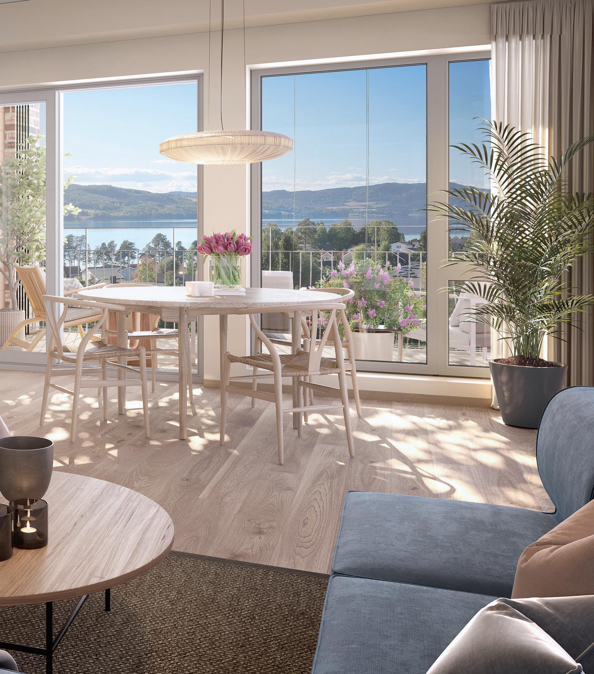 Kornhavens arkitekter og utbygger har lagt mye arbeid i byggenes plassering på tomta. Dette for å sikre at flest mulig får best mulig utsikt. Det er tross alt Mjøsa det er snakk om! Arkitektenes valg av store vinduer er ikke tilfeldig, og sikrer deg godt med dagslys i boligen.