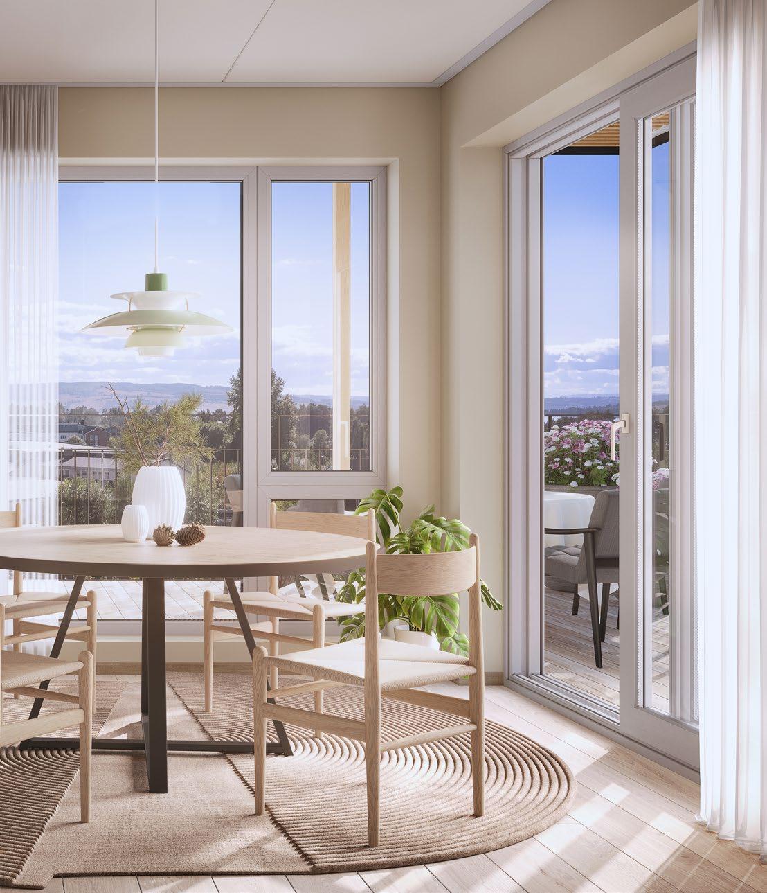 - Kornhavens leiligheter får store, høye vinduer, og skyvedører ut mot balkongene. Dette har vært med oss helt fra starten av prosjektet. Vi ønsket å slippe inn så mye lys og utsikt som mulig.