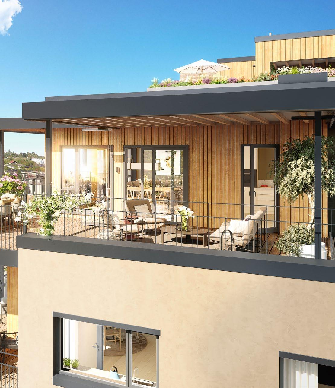 Store, luftige balkonger – der flere både har en åpen og en innglasset del - gir leilighetene det lille ekstra.