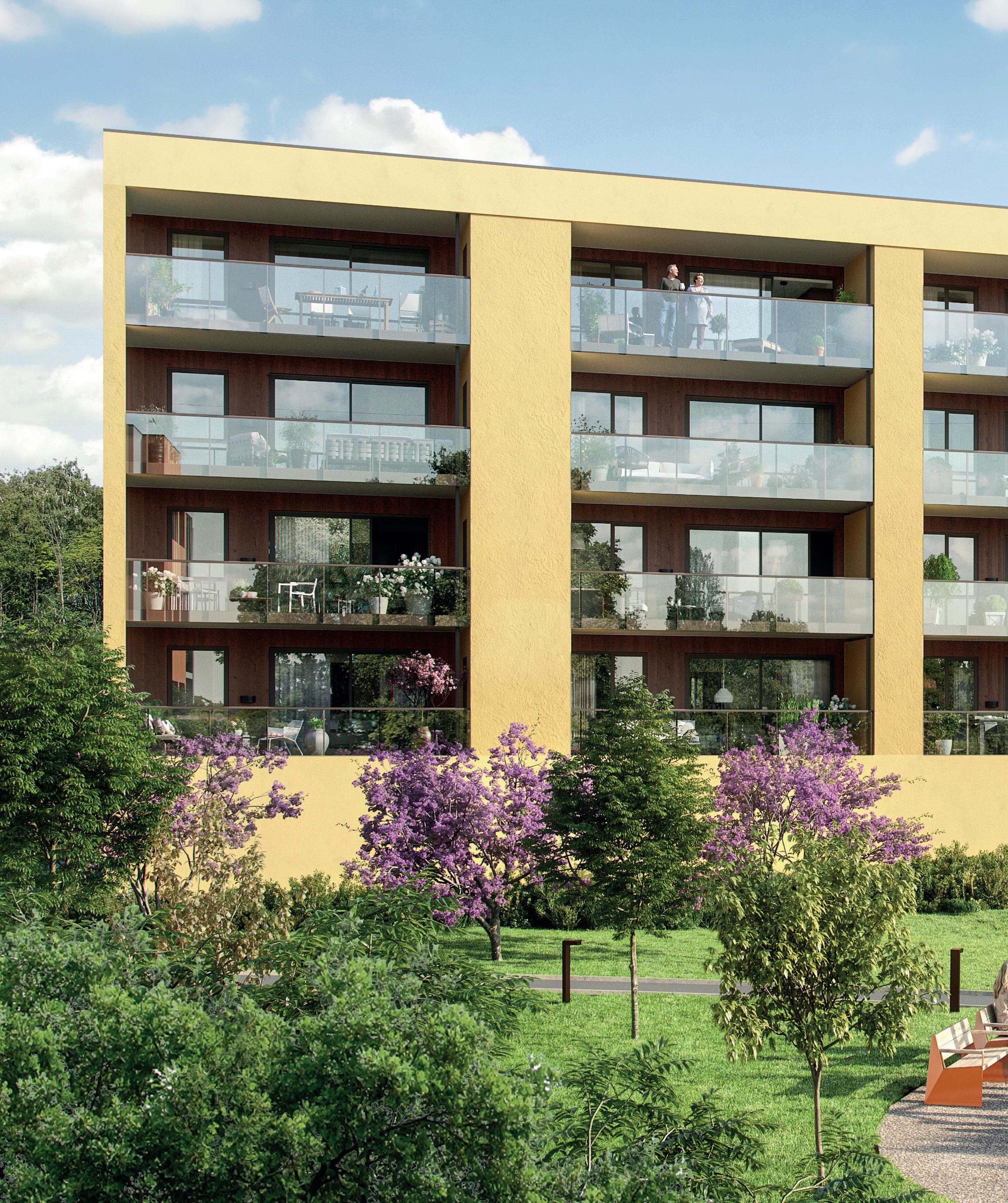 Nordhagen får rause balkonger med sol og fin utsikt. Her har du plass til utemøbler og planter. En koselig balkong er som en forlengelse av stua, og de store skyvedørene gjør at du nesten kan invitere omgivelsene inn. Både middagsmat og kaffe smaker bedre utendørs, mens du hviler blikket på den frodige hagen.