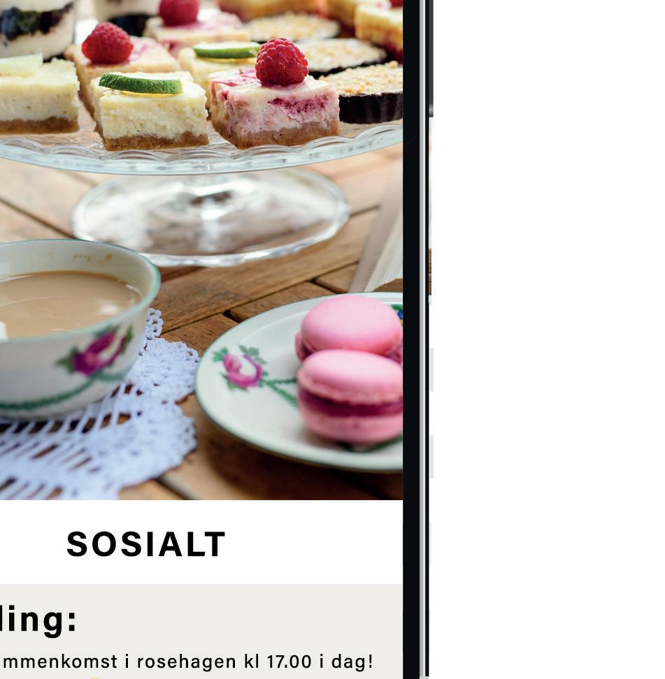 Hovedhusets 1. etasje har et selskaps/forsamlingslokale med et praktisk kjøkken og HC-toalett. Feire store og små begivenheter i denne «ekstra stua», som også vil bli brukt til felles arrangementer for beboerne. Den fine hagen og terrassen utenfor kan selvsagt også tas i bruk når været er godt. Sosialt og trivelig!