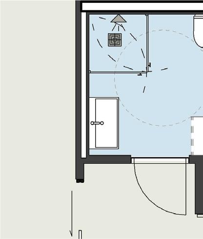 Det er et lunt og pent bad som utbygger har valgt for deg. Rene flater, tidsriktige fliser, vegghengt wc og dusjhjørne med glassvegger – et bad vi vet at mange vil trives med.