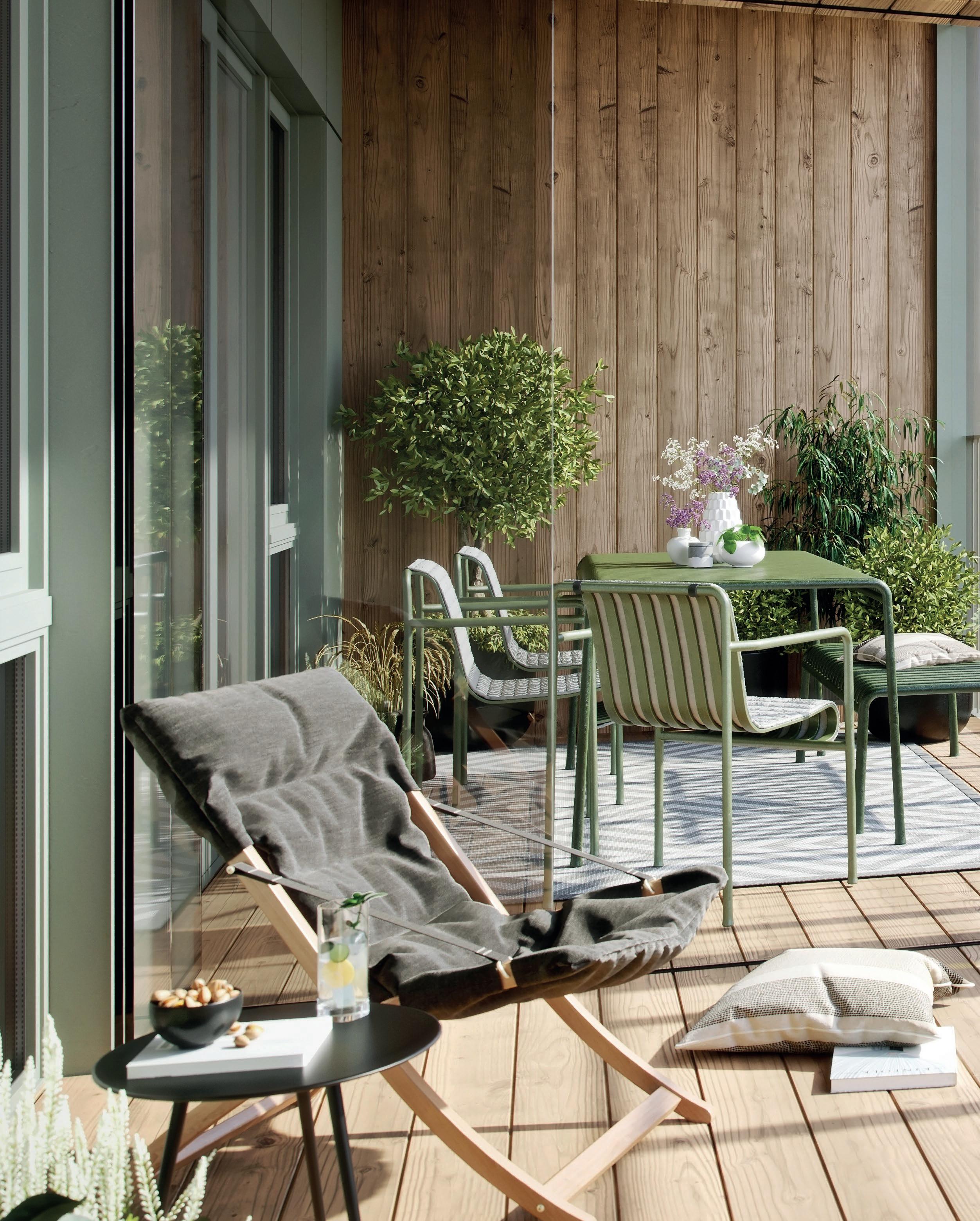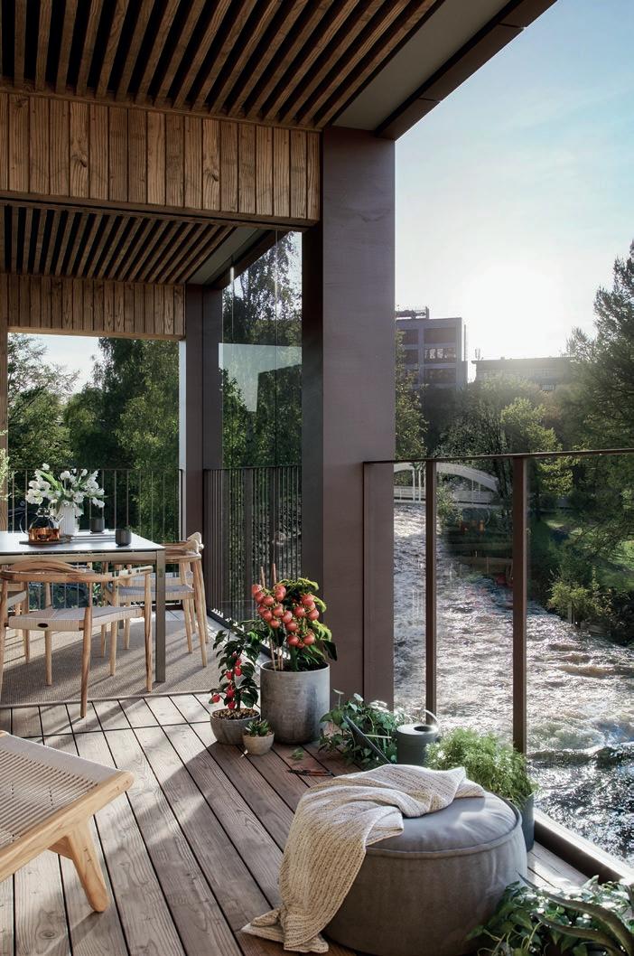 kongene er innglasset. Dette fremkommer av plantegningene. Leilighetene som vender ut mot bakgårdshagen i plan 2 får private og store terrasser. Leilighetene som vender ut mot Gjøvik gård får flott utsikt mot elven, elvepromenaden, parken og opp i etasjene også Mjøsa. Balkongene er overbygd og fremstår som lune og skjermede.