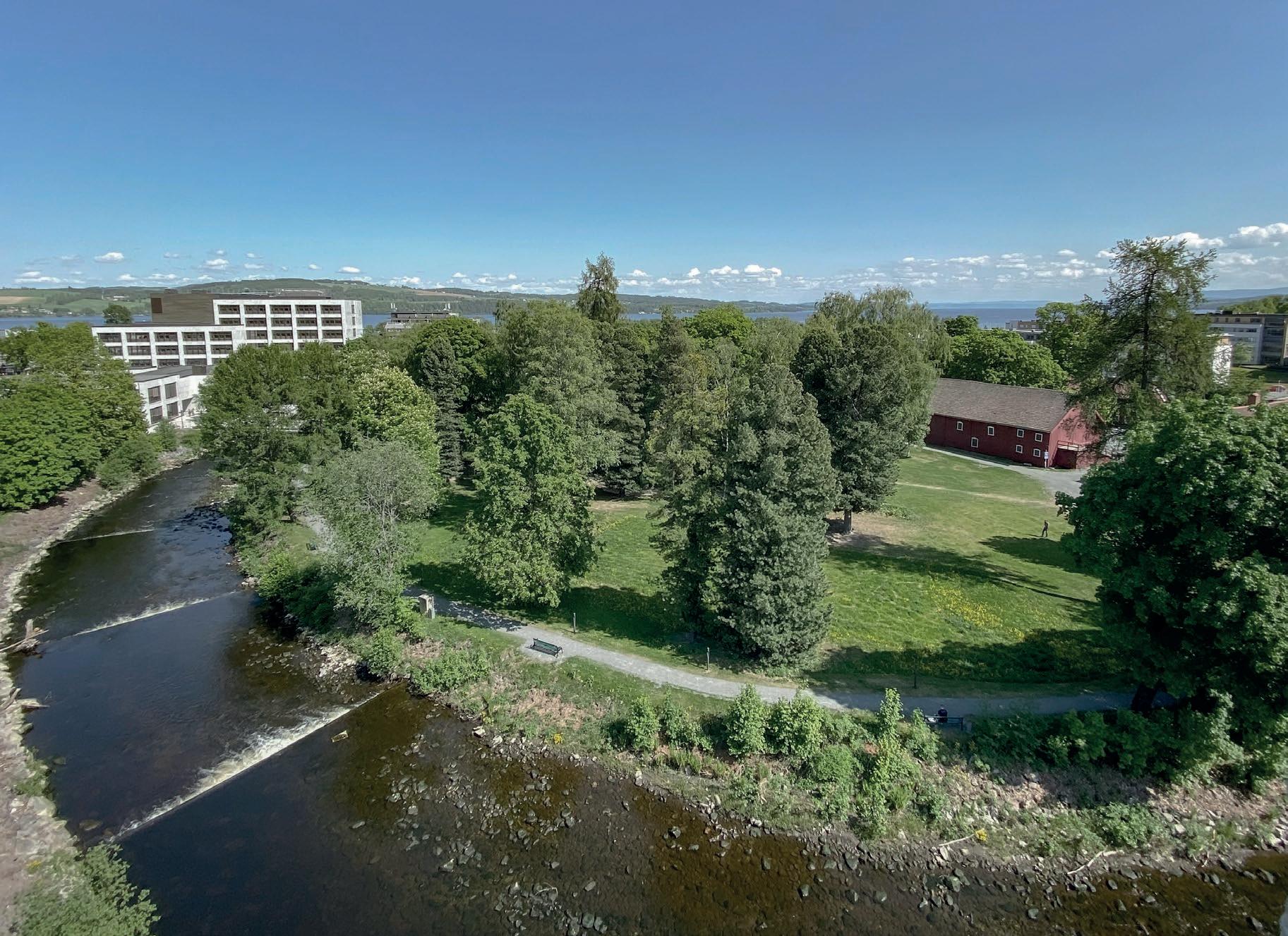 På det nedre nivået langs elvebredden skal det skapes attraktive oppholdsarealer og en flott promenade for publikum. Fra elverommet kan man se rett inn i parken på Gjøvik gård samt at man kan se både oppover og nedover langs elva som forsterker opplevelsen.