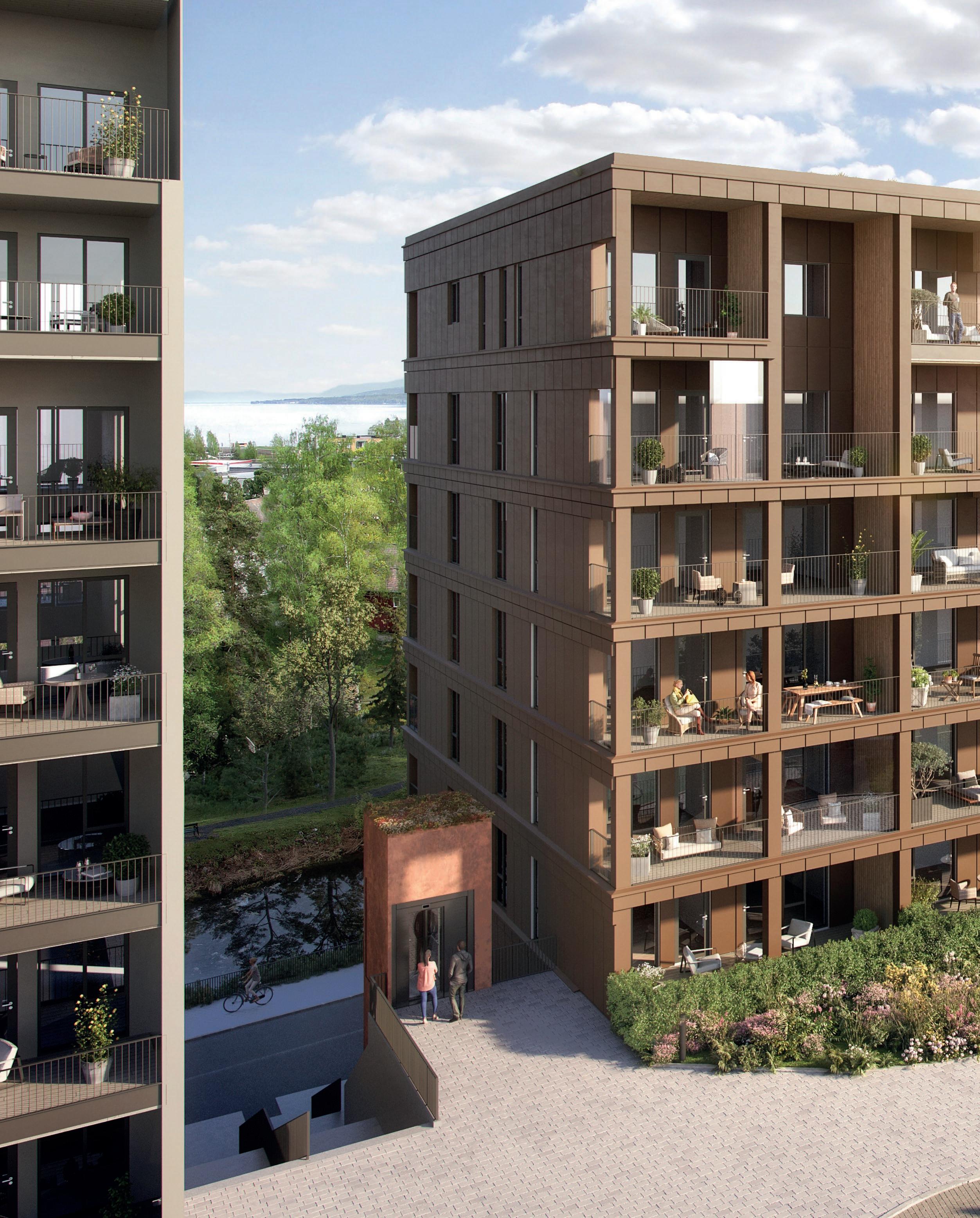 på prosjektet samtidig som man enkelt kommer seg fra elvepromenaden til Storgata og omvendt. Trappen og heisen ferdigstilles i neste salgtrinn.