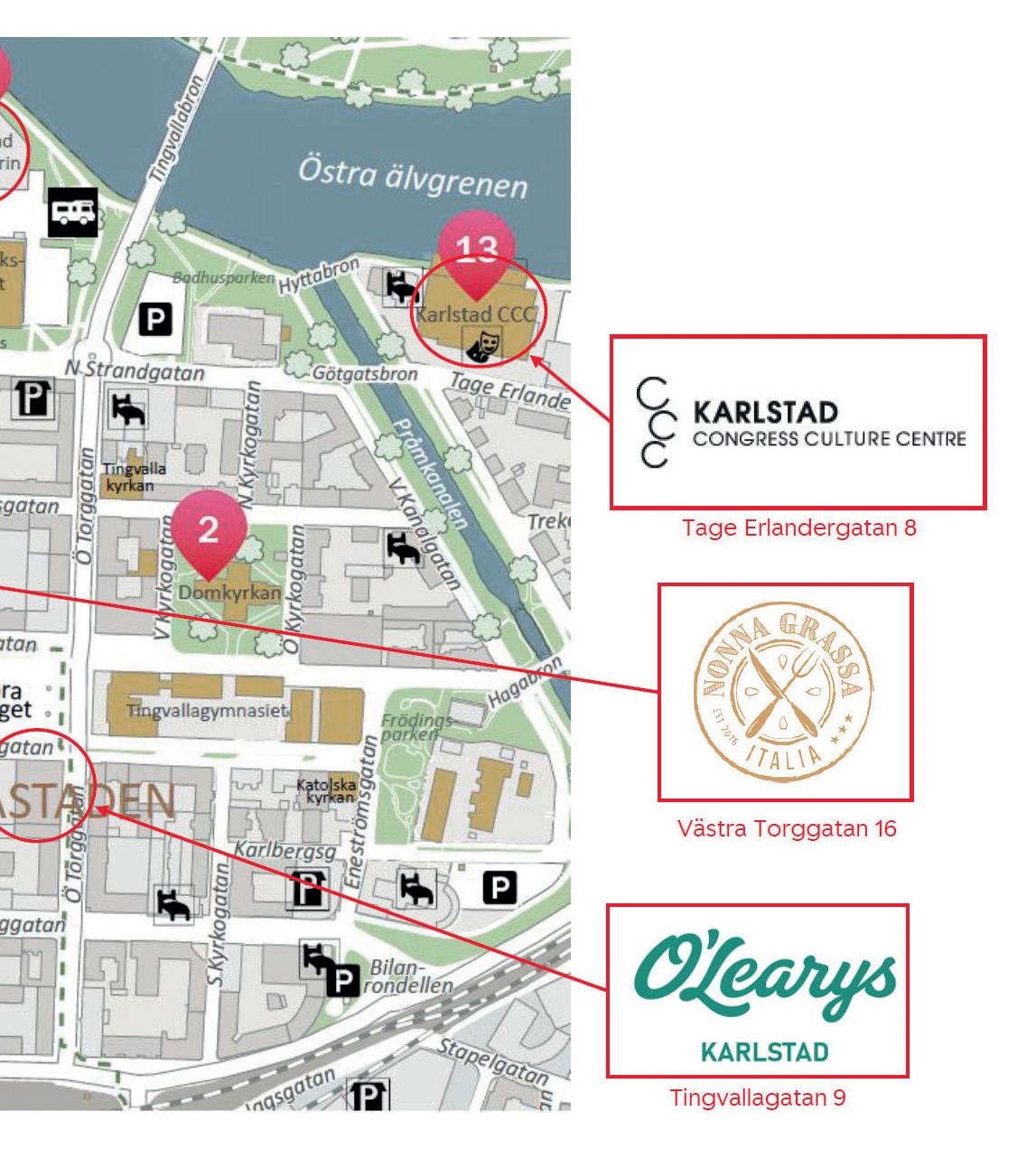 17.00 Fagdagen er slutt - vi drar direkte til Löfbergs Arena for middag og kamp mellom Färjestad og Växjö Lakers. Møt opp i resepsjonen på Hotell Fratelli for buss/taxitransport. NB! Vesker/sekker/bager/bærepose er ikke tillatt i arenaen!