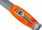 On/off switch that returns automatically to the “on” position after each stop, thus eliminating the risk of flooding the carburettor.