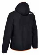 Hooded jacket, soft, lightly padded with thermal wadding. The zips and fabric have a windproof and anti-drop treatment, ideal for daily use, also suitable for adverse weather conditions. It is a garment that protects from the first cold spells, is not bulky and does not restrict movement, suitable for wearing over the mid-layers in the collection during the colder months, distinguished by an urban and casual look. The exclusive details and customisations give it a unique identity, making it a distinctive workwear item.