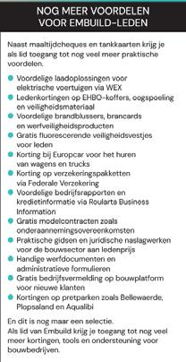 Het lidmaatschap bij Embuild omvat meer dan advies, hulp bij erkenningsdossiers of toegang tot modeldocumenten. Als lid van Embuild kan je namelijk ook heel wat geld besparen via onze ledenvoordelen. Maak zeker gebruik van deze mogelijkheden in de dure tijden waarin we leven!