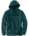 RELAXED FIT 10.5 oz/yd² - 356 gsm • Clarksburg-Fleece • Jersey gefütterte dreiteilige Kapuze mit Kordelzugverschluss • Lange Ärmel • Handwärmetaschen vorne mit verdeckter Medientasche • Dehnbare, Elasthanverstärkte Rippstrickbündchen an Ärmeln und Bund • Carhartt "C Logo" Druck auf der Vorderseite und "Logo" Grafikdruck auf dem linken Ärmel • 55 % Baumwolle / 45 % Polyester