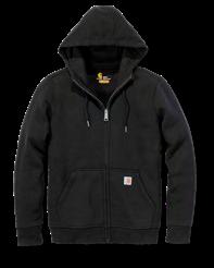 RELAXED FIT 10.5 oz/yd² - 356 gsm • Clarksburg-Fleece • Jersey gefütterte dreiteilige Kapuze mit Kordelzugverschluss • Lange Ärmel • Zwei Handwärmetaschen vorne mit verdeckter Medientasche • Durchgehender Frontreißverschluss • Dehnbare, Elasthanverstärkte Rippstrickbündchen an Ärmeln und Bund • Carhartt-Label auf Tasche genäht • 55 % Baumwolle / 45% Polyester