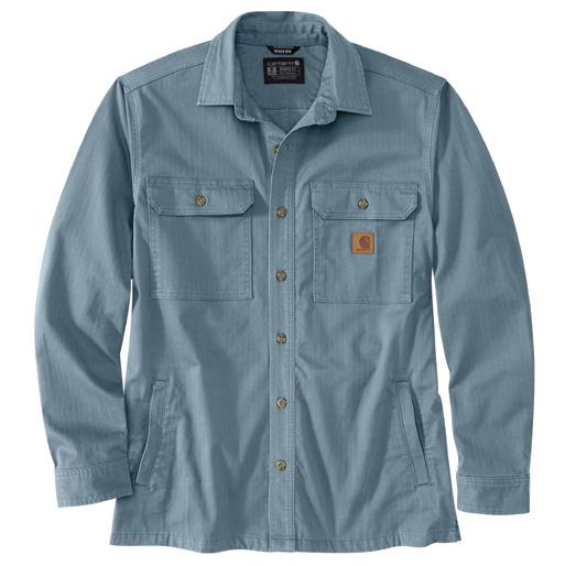 RELAXED FIT Rugged Flex™ - Allows for more movement • Spread collar • Left chest pocket with zipper closure • Exterior drop-in pockets secured with hook and loop • Two interior pockets: one pocket with zipper closure and one with hook-and-loop closure • Snap front closure • Button adjustable cuffs • Double stitched main seams • Carhartt label sewn on pocket • 8 oz/yd² - 272 gsm • Stretch Ripstop • 59% Cotton / 39% Polyester / 2% Elastane