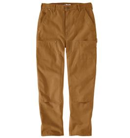 RELAXED FIT Wind Fighter™ - Wind resistant • Storm Defender™ - Waterproof breathable laminated membrane • Two front pockets with zipper closure • Secure zippered back pocket on wearer's right side • Double front with kneepad pockets with bottom cleanout openings • Ankle-to-knee zippers with storm flaps • Hook-and-loop adjustable cuffs • Fully taped waterproof seams • Packable into hand pocket • Carhartt label sewn on pocket