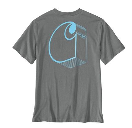 • Stretchable, elastane reinforced rib knit cuffs • Drop-tail hem with side slits for added coverage and mobility • Raglan sleeve increases range of motion • Carhartt “Est. Logo” graphic print on front
