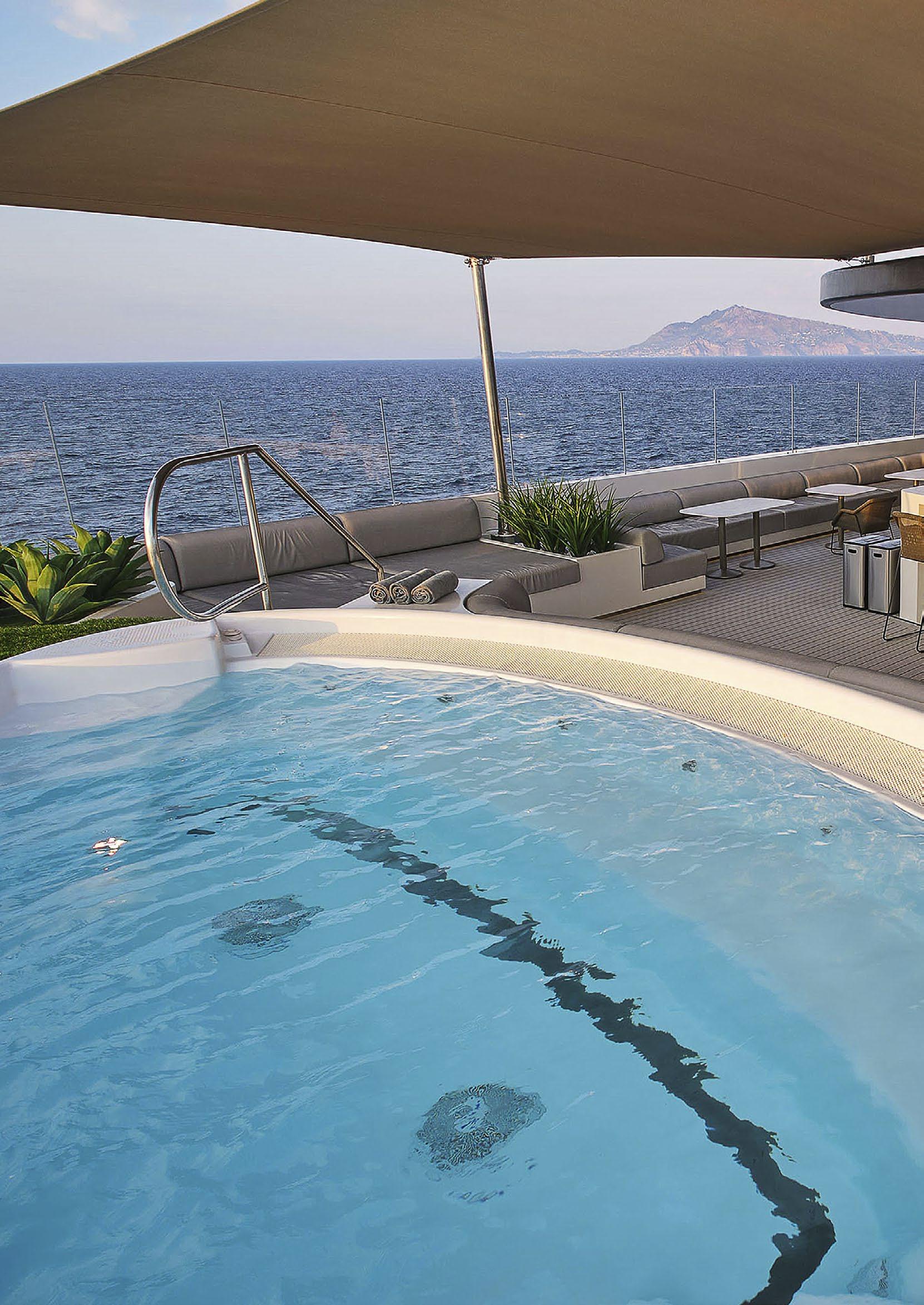 Take a leisurely dip in the infinity-style Aqua Pool, located at the aft of the yacht on the sun-kissed Pool Deck.