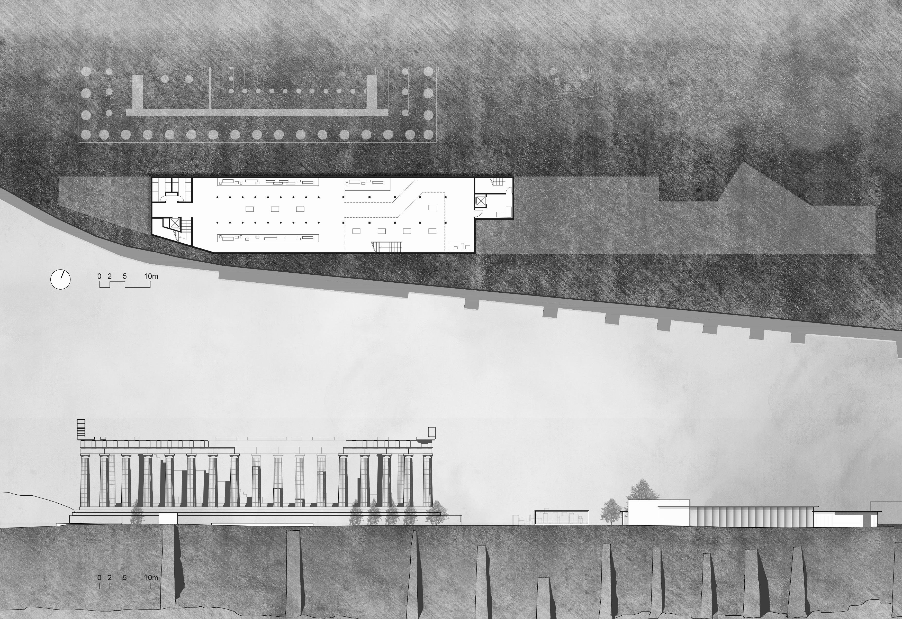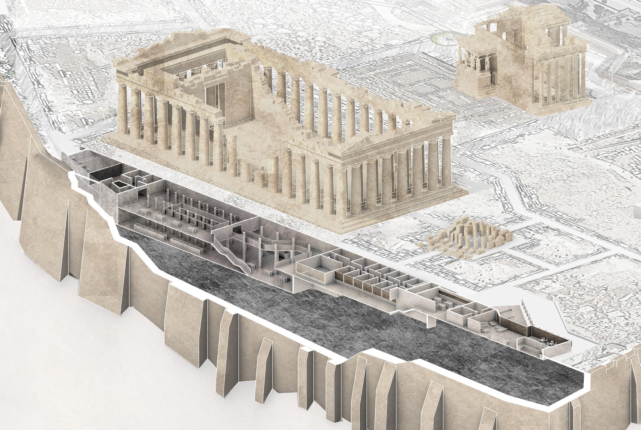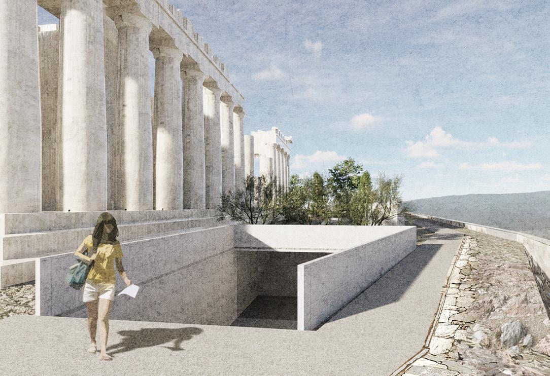 The Acropolis has a long history and has been built, destroyed and rebuilt many times since antiquity. Today we are able to enjoy our visit because of the diligent exploration and restoration by archaeologists since the recent past. Yet the archaeological process is like a silent story, attached to monuments and artifacts, unknown to the public. The project seeks to improve the Acropolis' infrastructure and landscape experience by incorporating a building that demonstrates the importance of archaeology to the Acropolis. The bulk of the building is located underground, while providing a visual connection to the site and offering visitors a new perspective on the Acropolis' history.