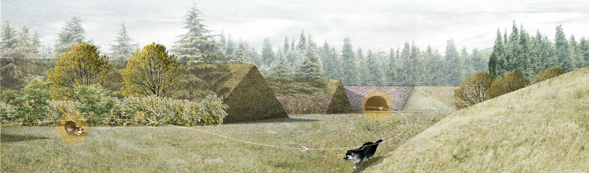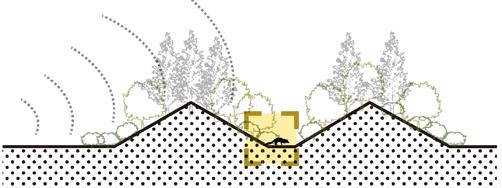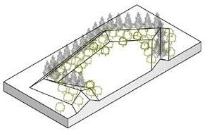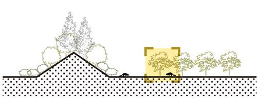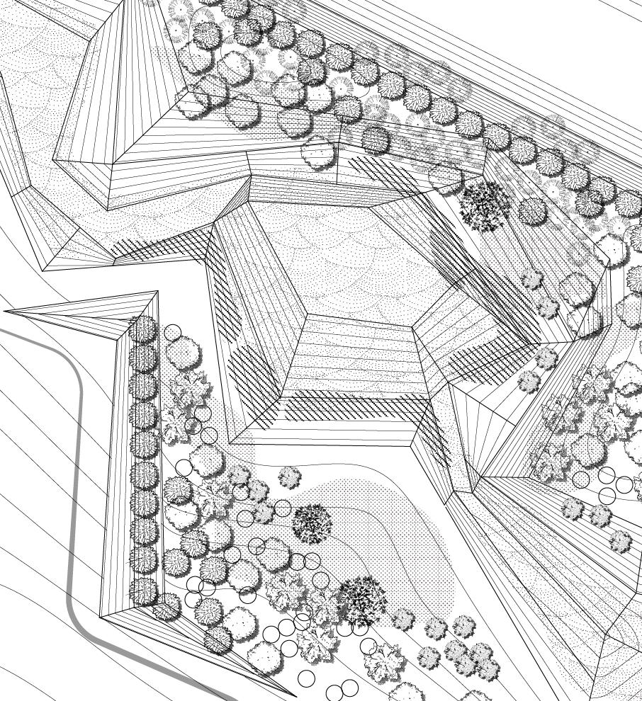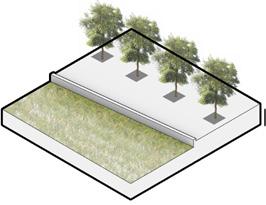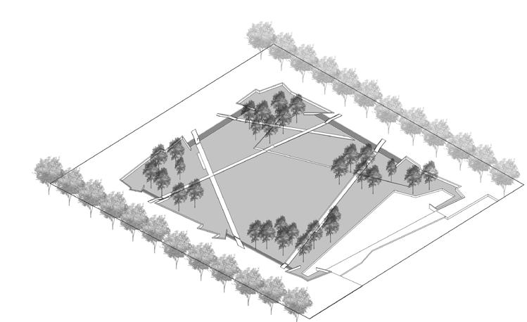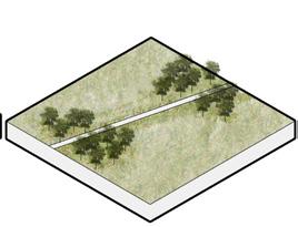 Trees planted in patches at both ends of the road suggest the axis, emphasizing the space at the beginning and end.